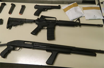 Entre revólveres e pistolas, a Polícia localizou também uma arma estrangeira, uma escopeta de calibre 12, de repetição (capacidade para sete tiros) de fabricação italiana.