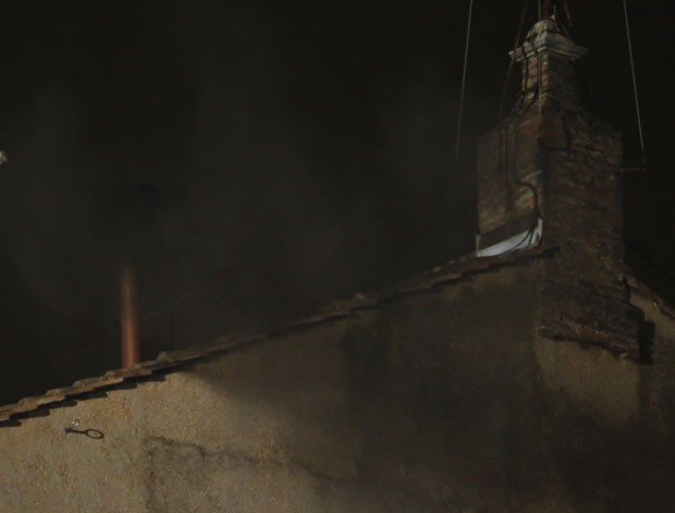 A fumaça preta se ergueu da chaminé da Capela Sistina por volta das 19h40 locais (15h40 de Brasília), durante vários minutos, indicando que não houve a maioria de dois terços dos votos necessárias para eleger o novo pontífice.